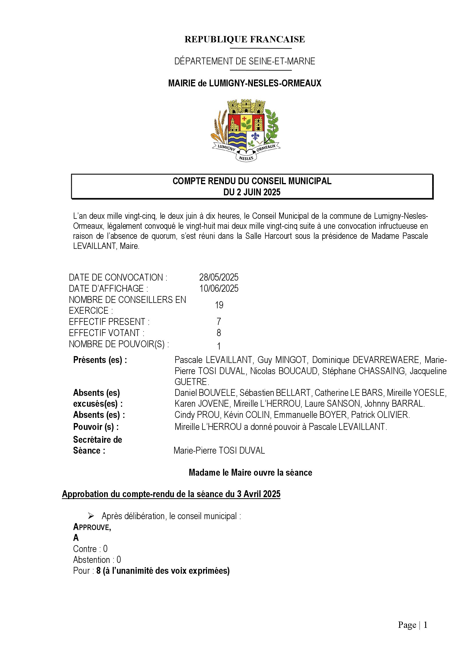Vous êtes ici : Accueil > Compte rendu de la séance du conseil municipal du 2 juin 2025