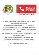 La Municipalité vous informe de la mise en place d’un numéro d’urgence à destination des Administrés, Entreprises et Administrations pour toute demande URGENTE en dehors des jours et horaires...