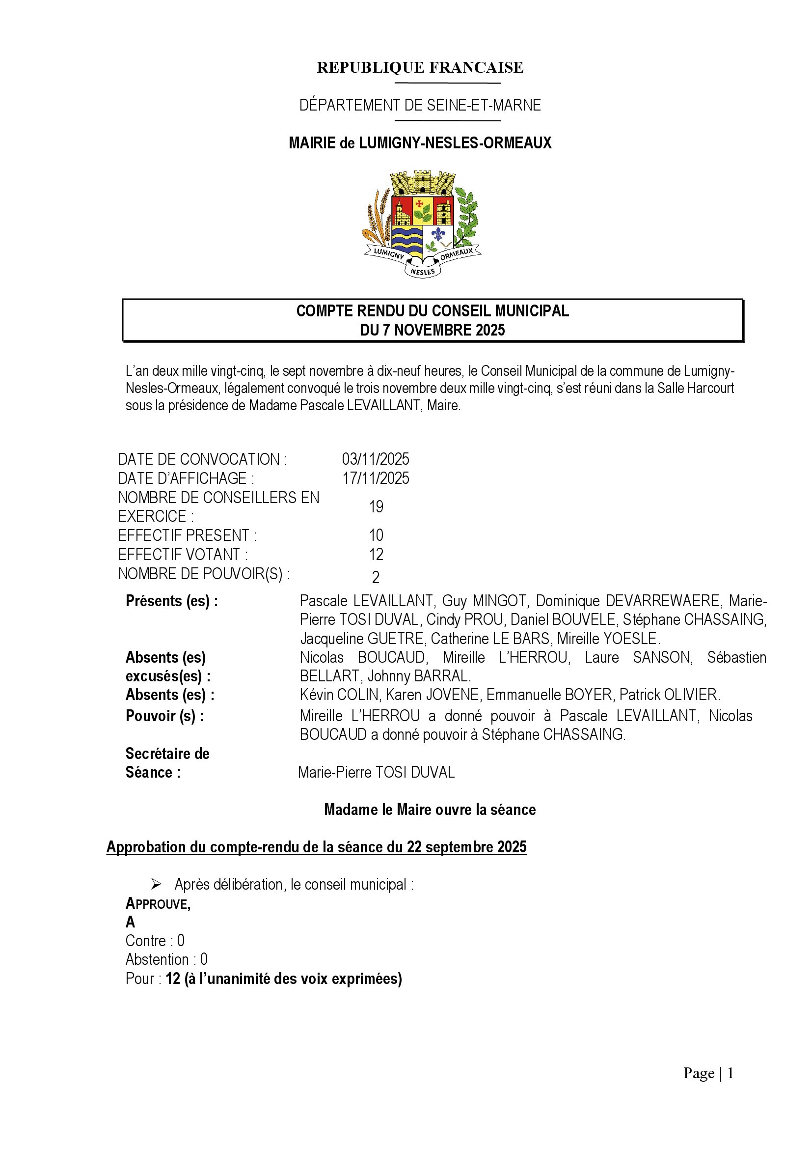 Vous êtes ici : Accueil > Compte rendu du conseil municipal du 7 novembre 2025