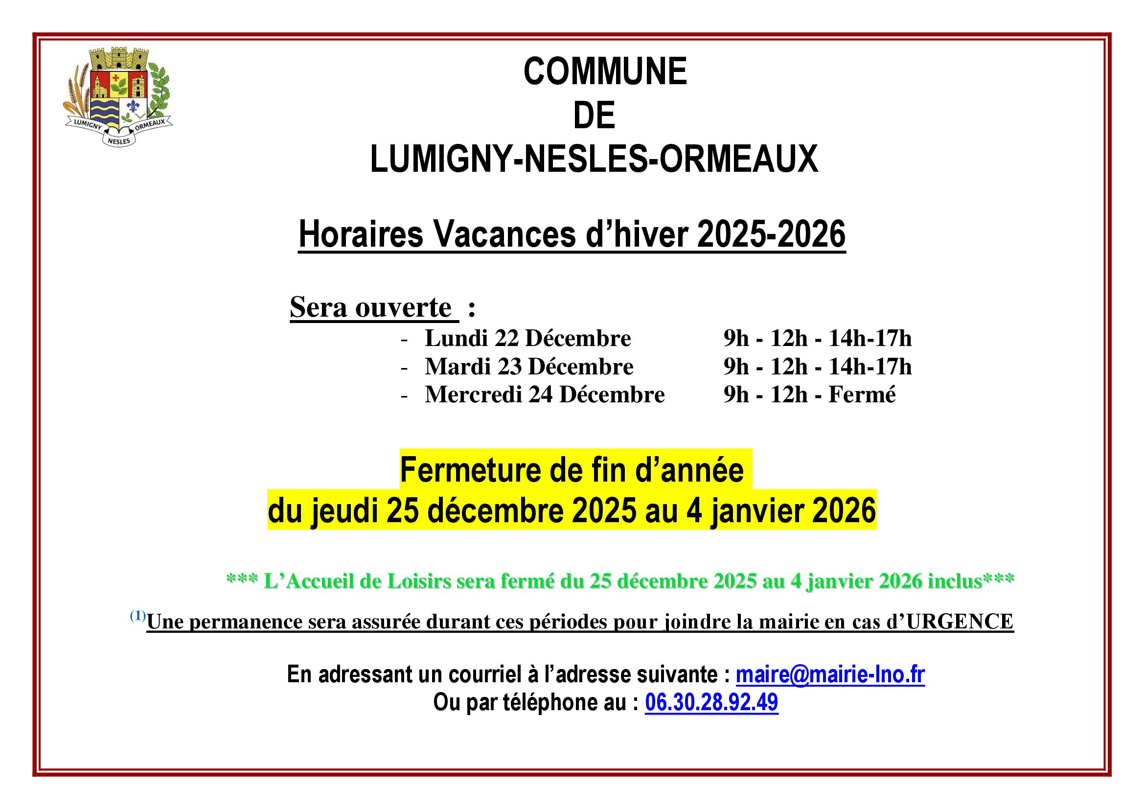 Vous êtes ici : Accueil > Horaires vacances d'hiver