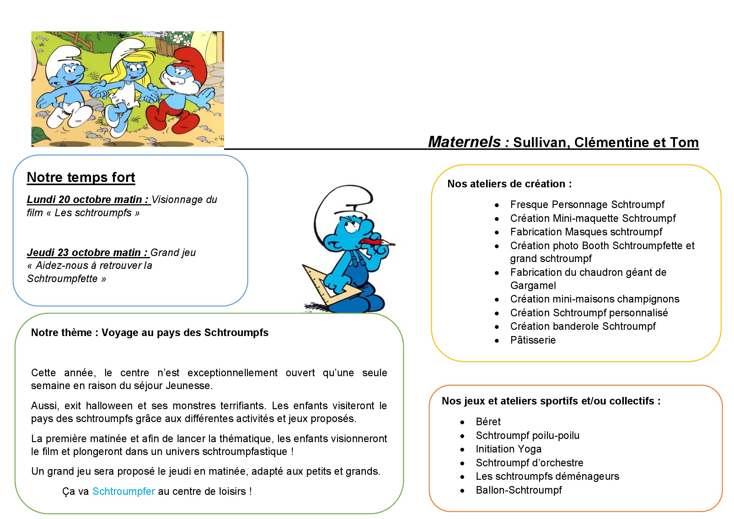 Planning des activités du centre de loisirs des vacances de la toussaint 2025