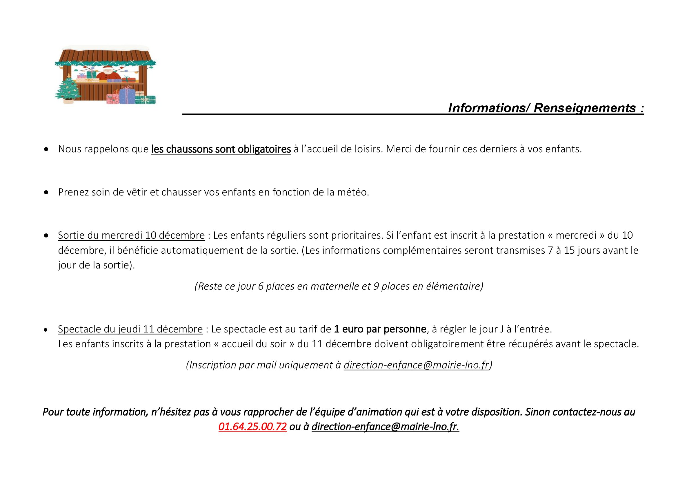 Planning des activités des mercredis de Novembre - Décembre 2025