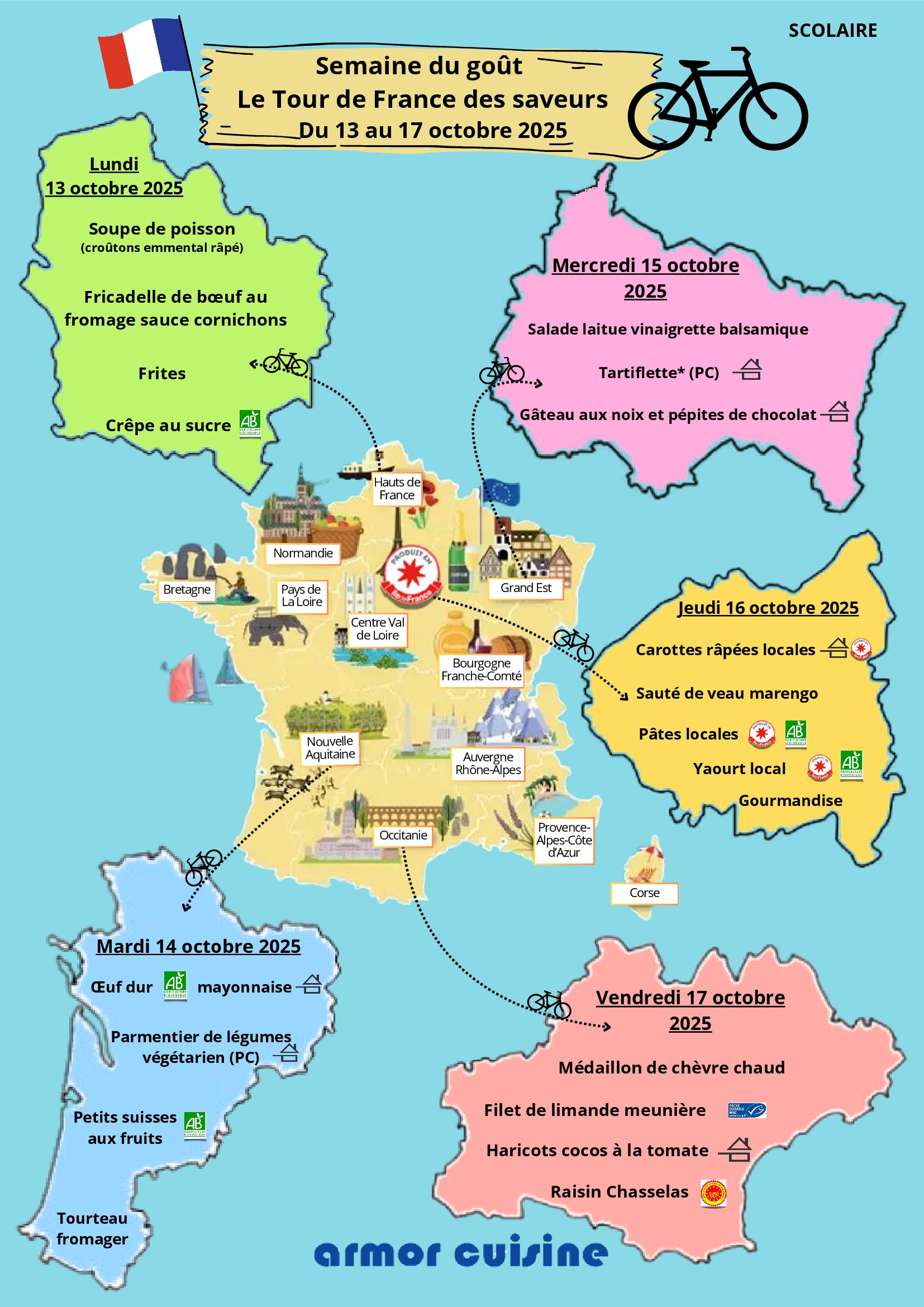 Veuillez trouver ci-dessus (en téléchargement) les menus pour la période indiquée :
