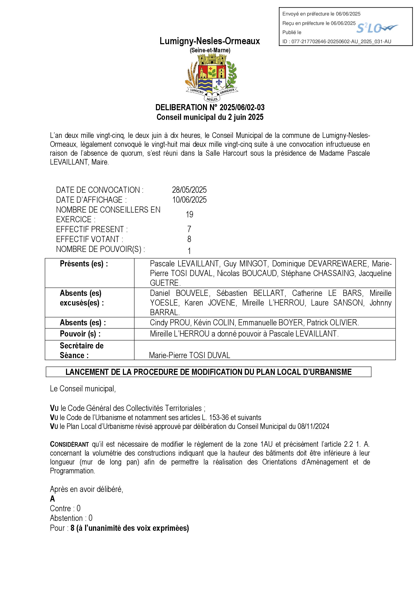 Les pièces du dossier ainsi qu’un registre seront mis à la disposition du public en mairie de Lumigny-Nesles-Ormeaux pendant 1 mois, aux jours et heures habituels d’ouverture de la mairie (lundi et mardi de 9h à 12h, mercredi de 9h à 12h et de 14h à 17h et vendredi de 14h à 17h) du jeudi 25 septembre au lundi 27 octobre 2025 inclus. Les observations pourront être consignées sur le registre ou adressées par courrier en mairie de Lumigny-Nesles-Ormeaux ou à l’adresse mail suivante contact@mairie-lno.fr
